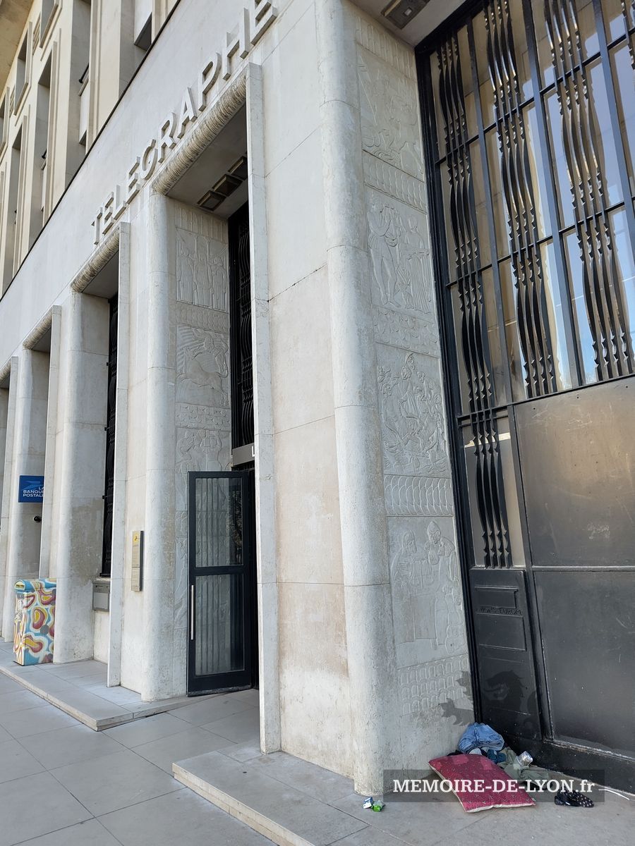 Édifié entre 1935 et 1938 par l’architecte Michel Roux-Spitz à l’emplacement de l’ancien hôpital de la Charité, détruit quelques années plus tôt, l’Hôtel des Postes marque l’entrée de Lyon dans la modernité architecturale. Sa longue façade monumentale abrite l’ancienne grande poste centrale de la ville. À l’intérieur, une peinture murale de 250 m² réalisée par Louis Bouquet célèbre le rayonnement mondial de Lyon par les échanges et les ondes.