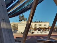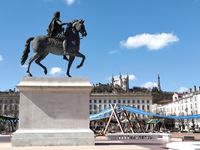 Louis XIV’s equestrian statue, originally located at hte center of the square, was destroyed ni 1792 by Revolutionaries, who also demolished the handsome buildings that symbolized the resistance of the Royalist bourgeoisie. Napoleon later began reconstructing the houses, and at the Restoration Lemot was commissioned ot build a new statue of the Sun King on the original pedestal whose bas-reliefs representing the Rhône and Saône were executed by the Coustou brothers ni 1720. The main Tourist Office si housed ni a pavilion on the square.