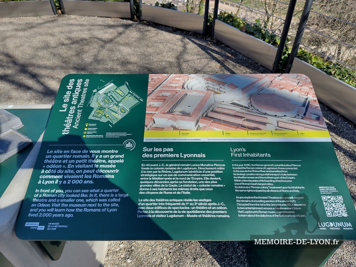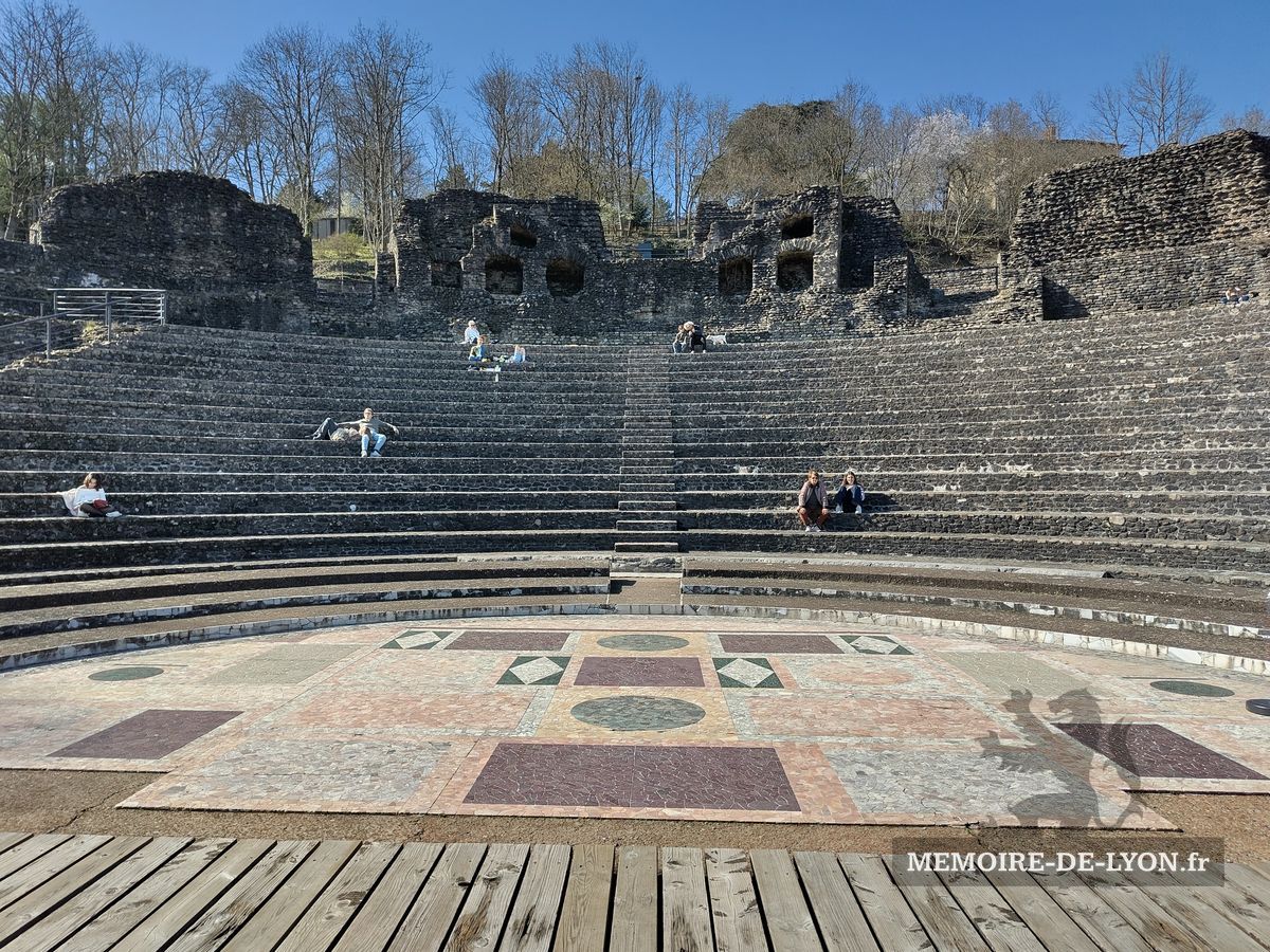 Dissimulés pendant des siècles sous la terre et des vignes, ces édifices ont été redécouverts à partir de 1933, grâce aux fouilles décidées par le maire Édouard Herriot. Le théâtre, construit en 15 avant J.-C., fut agrandi à 10 000 places sous l’empereur Hadrien, vers l’an 120. La disparition de son mur de scène, regrettable pour l’archéologie, a permis de l’ouvrir sur un jardin. L’odéon était réservé à la musique et à la poésie ; il était vraisemblablement recouvert d’une toiture de plaques de bronze. L’ensemble retrouve chaque été sa vocation culturelle et festive.