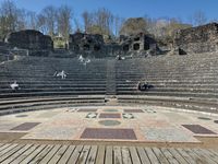 These buildings were hidden for centuries under a mass of earth and vines and were discovered during excavations ordered by the Mayor Édouard Herriot in 1933. The theatre, built in 15 BC, was enlarged to seat up to 10,000 people in around 120 AD under the reign of Emperor Hadrian. The disappearance of its stage wall, although a sad loss for the archaeological world, allows the theatre to open out onto a large garden. The Odeon was reserved for musical recitals and poetry readings and was probably covered by a bronze plate roof. The cultural and festive vocation of the site lives on to this day, with the summer festival held here every year.